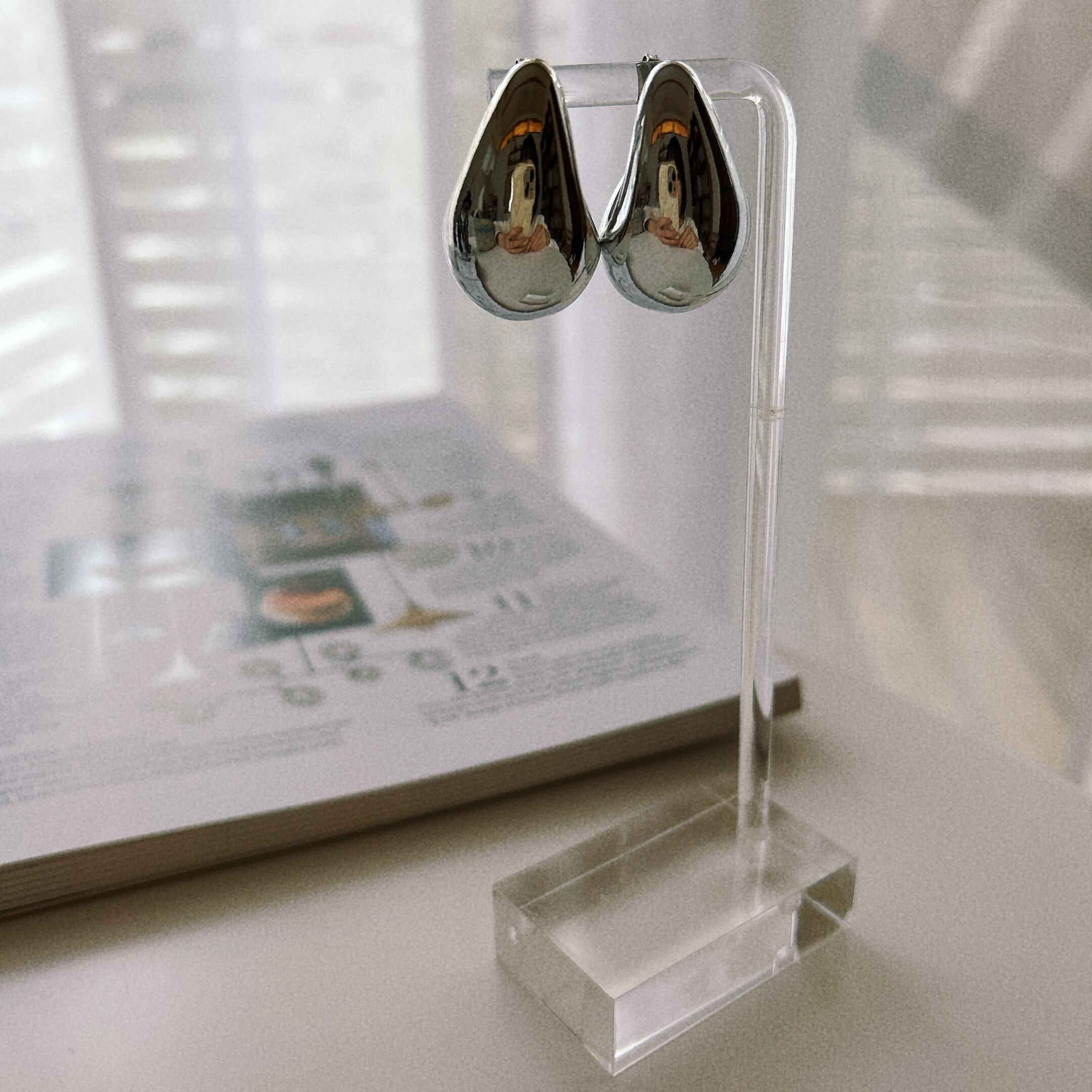 メタリックシルバーピアス