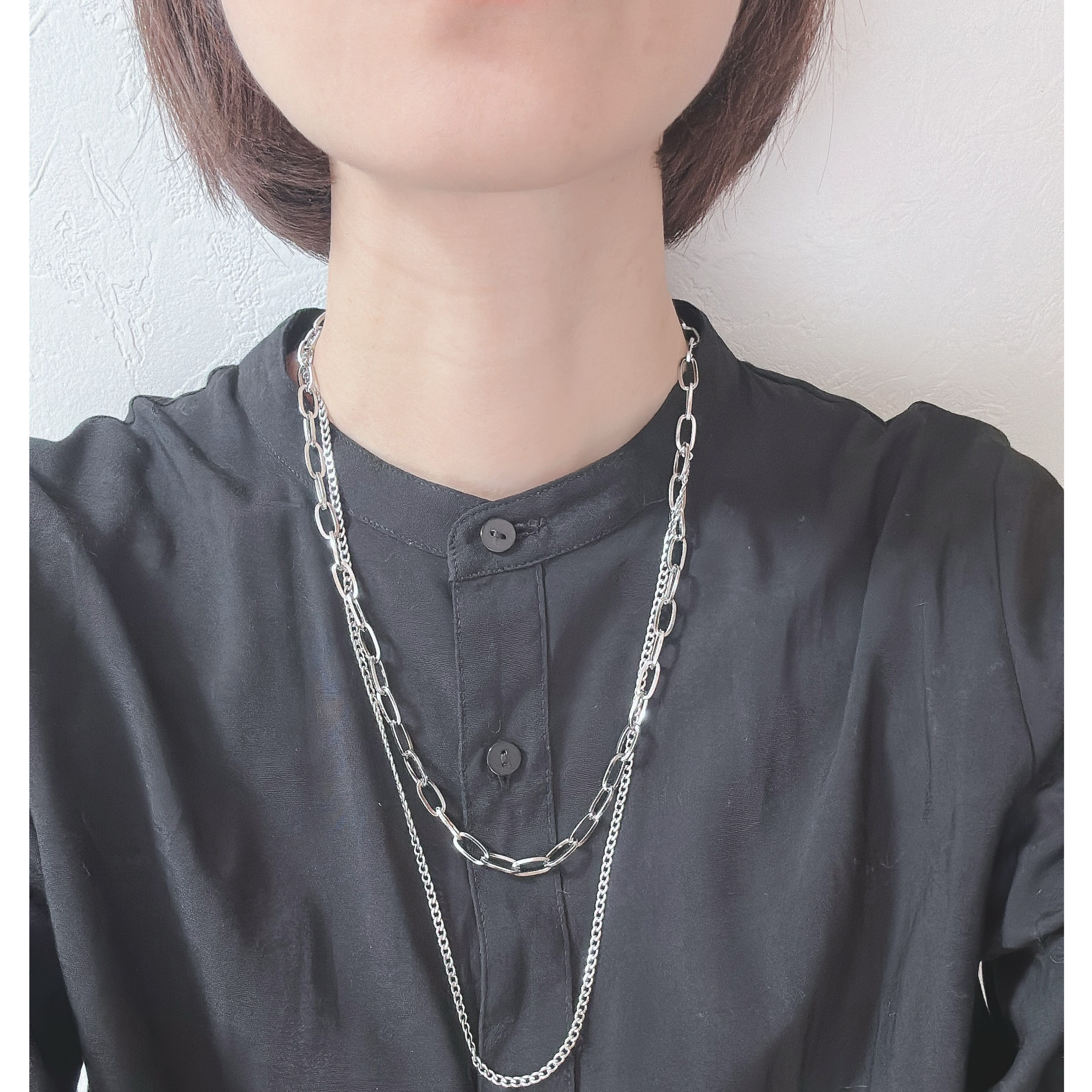 シルバーのダブルチェーンネックレス